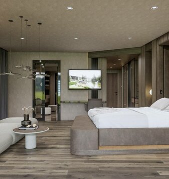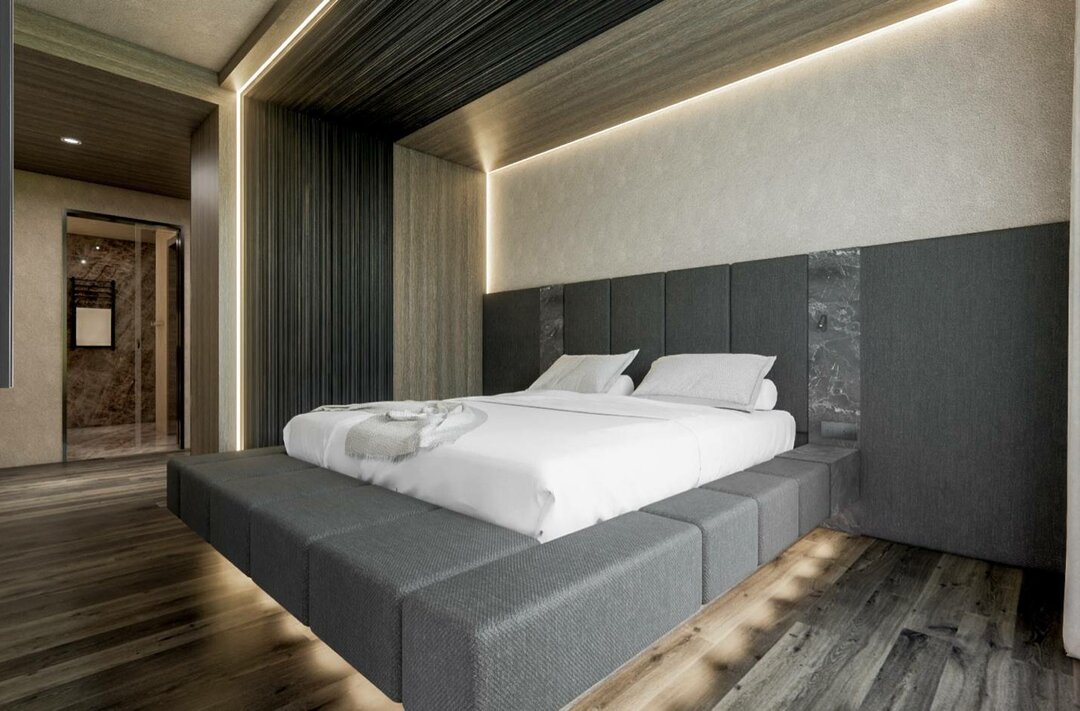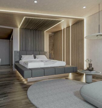 La NUOVA TERRA PRESTIGE SUITE unisce un’architettura elegante a dettagli caldi e accoglienti, offrendo così il rifugio ideale per le famiglie. Un giardino privato con piscina riscaldata e sauna esterna, oltre a un’area pranzo e soggiorno progettate separatamente, creano spazio per il relax, momenti condivisi e un’assoluta privacy.